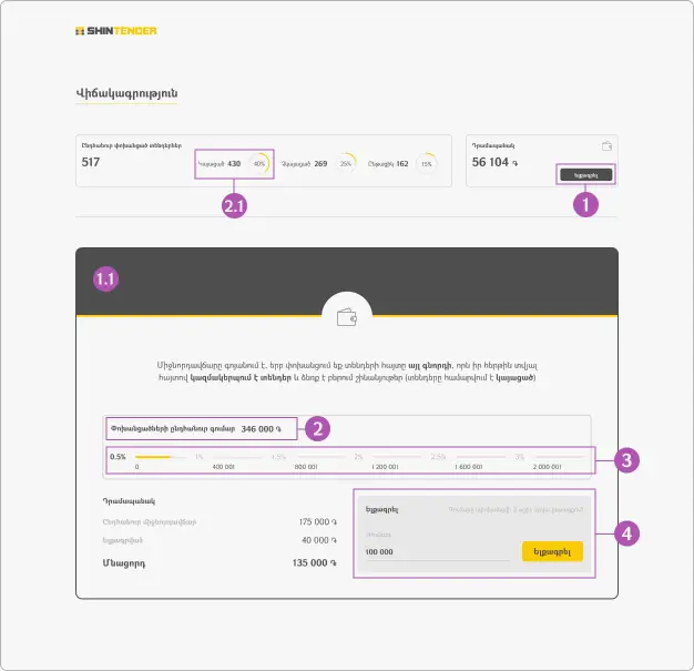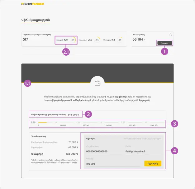 Այն փոխանցված տենդերների կայացած գործարքների արժեքից ձևավորվող միջնորդավճարների կուտակային հաշիվ է։