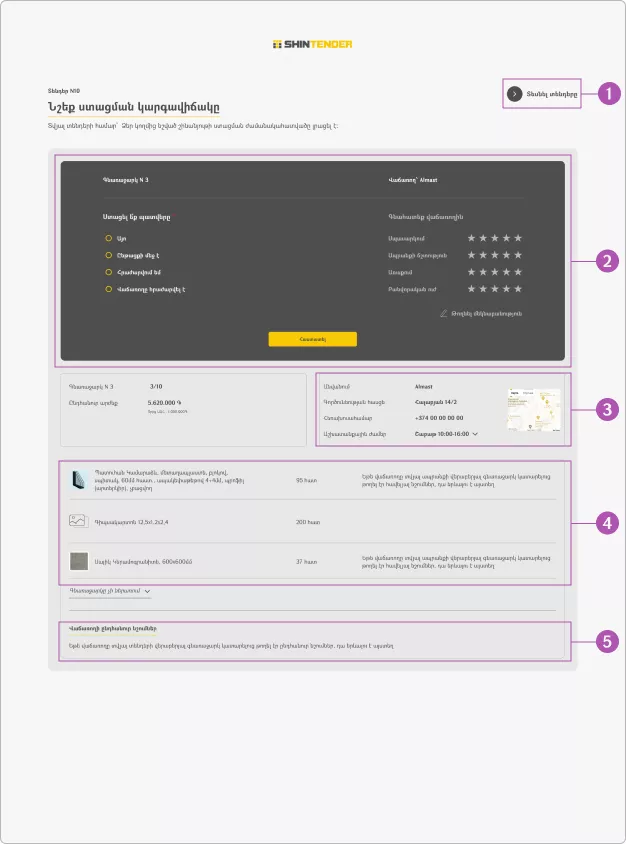 Գնորդը հնարավորություն է ստանում հեշտությամբ և անվճար հայտարարել շինանյութի տենդեր, վաճառողներից ստանալ մրցակցային գնառաջարկներ և ընտրել լավագույն տարբերակը։