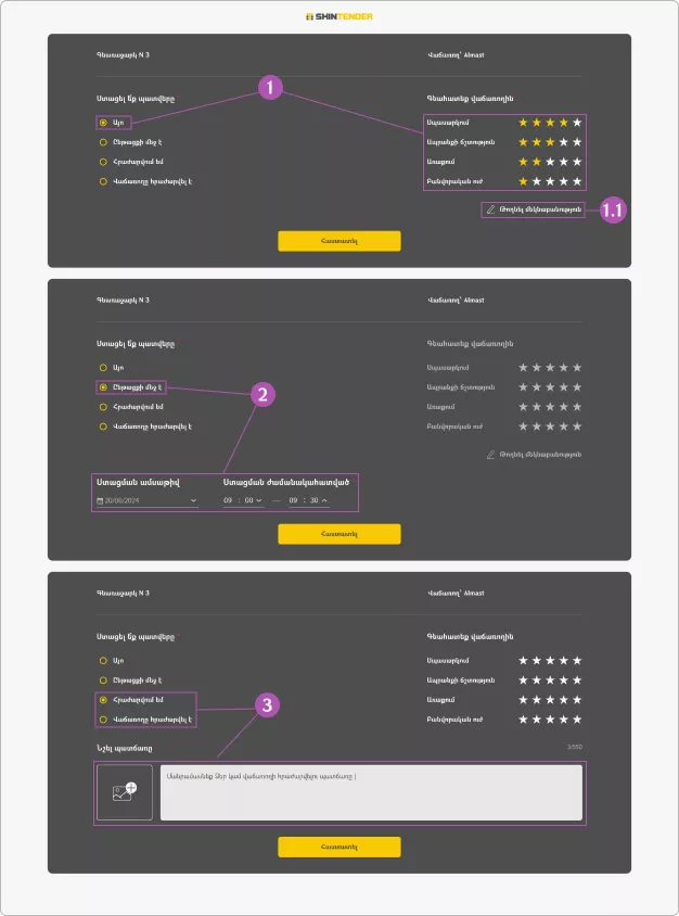 Ստացման փուլ - Դեռ չեք ստացել պատվերը, կամ ստացման կարգավիճակում նշել եք “Ընթացքի մեջ է” պատասխանը,