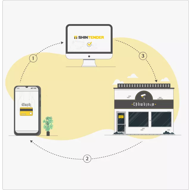 Վճարումը ամբողջությամբ փոխանցվում է "Շինտենդեր" ՍՊԸ-ին(1), և պահվում մինչև գնորդը կհաստատի պատվերը հաջողությամբ ստանալու փաստը(2), որից հետո գումարը կփոխանցվի վաճառողին(3)։ Հակառակ դեպքում գումարը հետ կփոխանցվի։ Այդ կերպ ապահովվում է վերահսկողությունը և գործարքի անվտանգությունը։