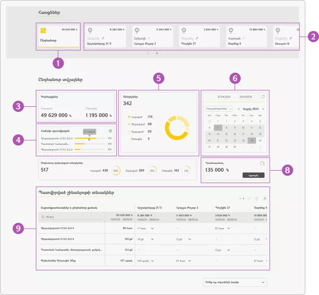 Որևիցե հասցեի էջ մուտք գործելուց հետո վիճակագրության տվյալները փոխվում են տվյալ հասցեի ցուցանիշներով՝ բացի ընդհանուր փոխանցած տենդերներից և դրամապանակից։