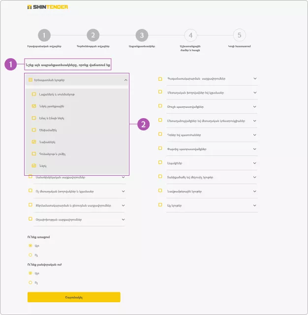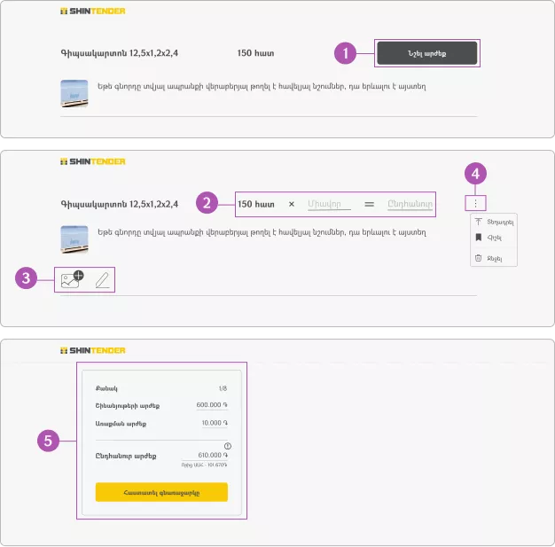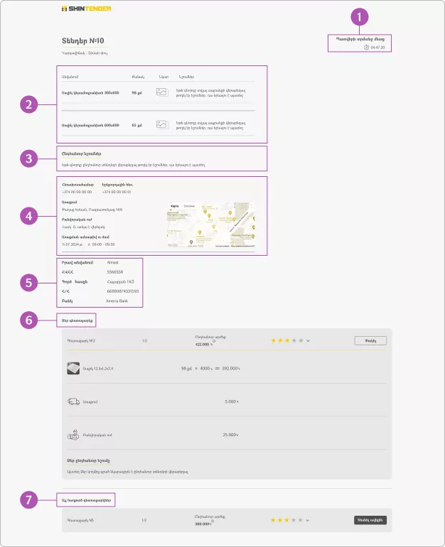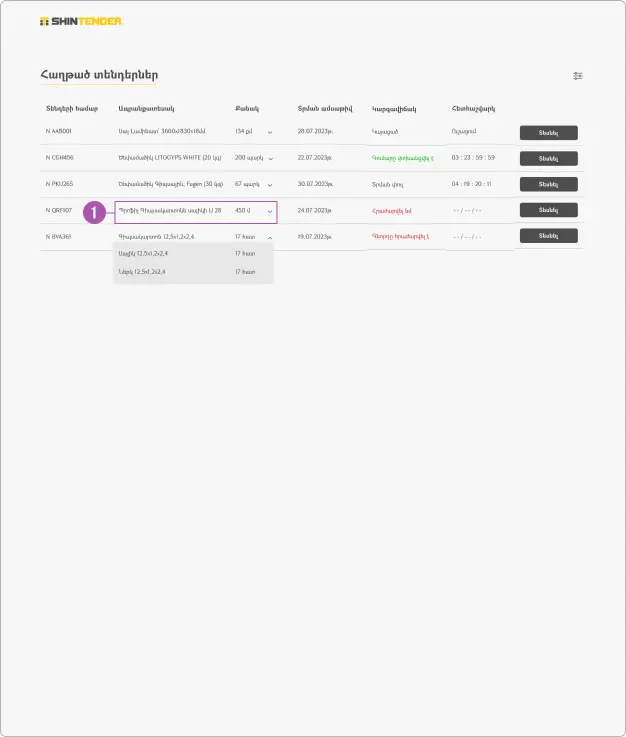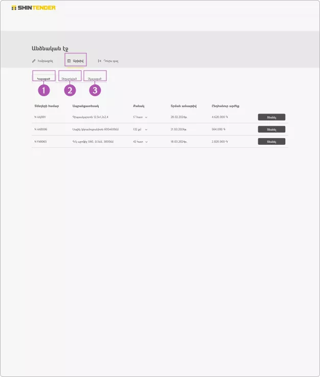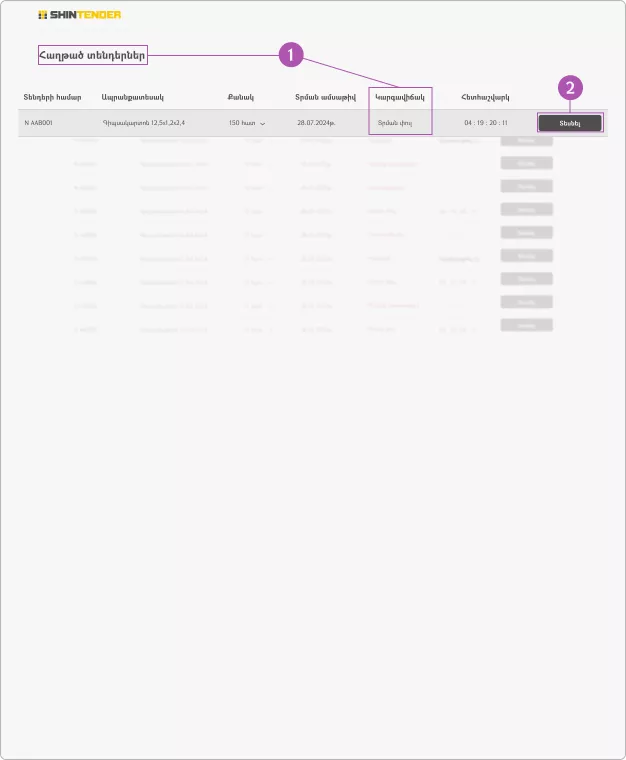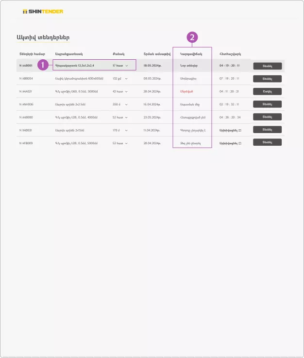 - Կարգավիճակ սյունյակը ցույց է տալիս, թե ինչ փուլում է գտնվում տենդերը։