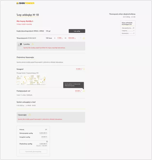 Նոր տենդեր - Նոր կազմակերպված տենդեր, որին դեռ չեք արձագանքել,