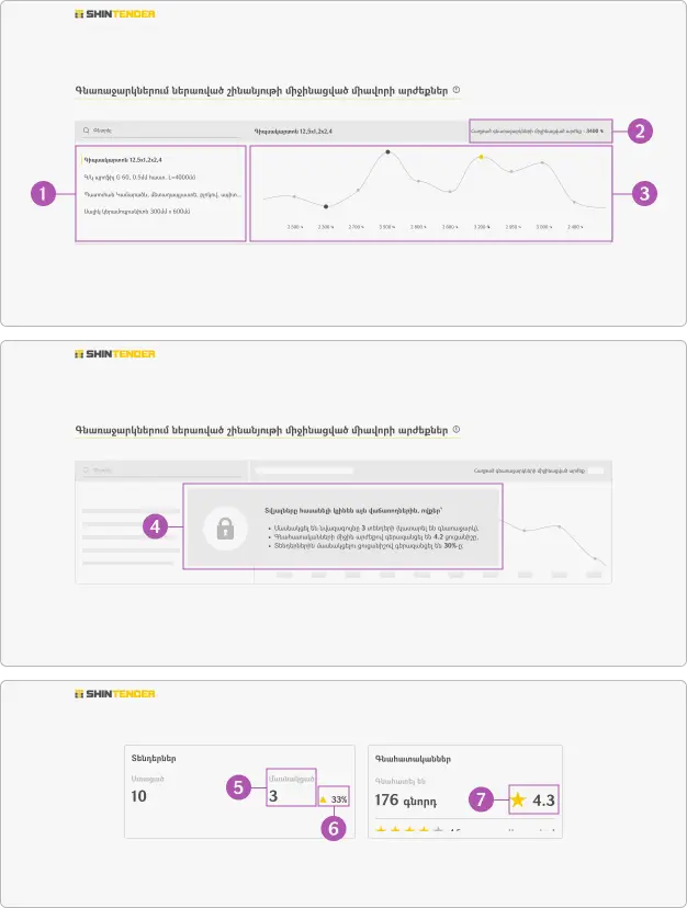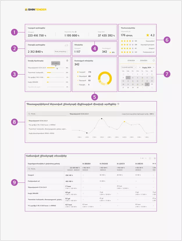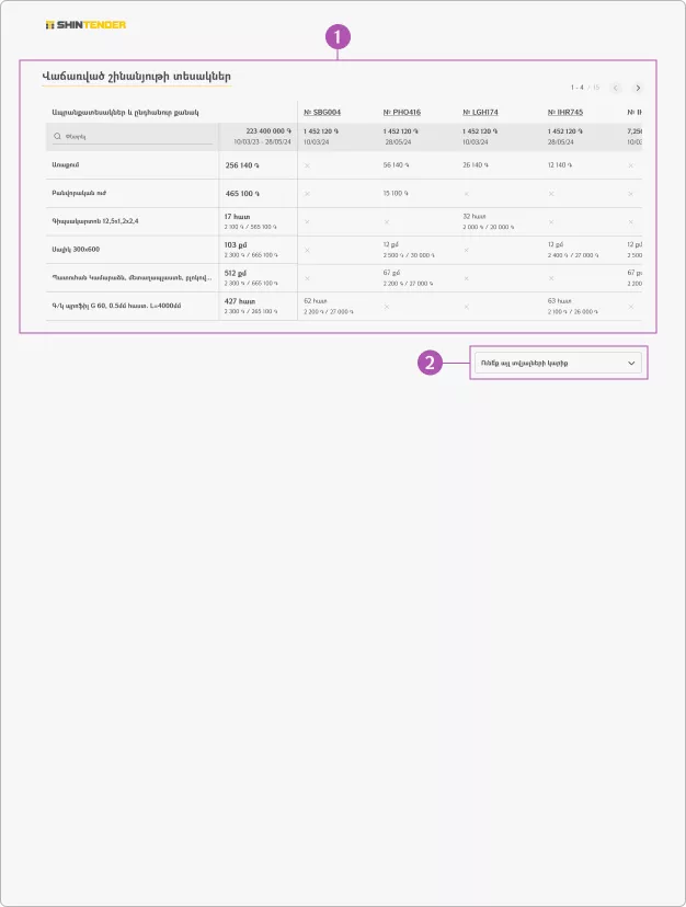 - Սեղմելով նշված հատվածին՝ կտեսնեք տվյալ տենդերում ներառված բոլոր շինանյութերը,